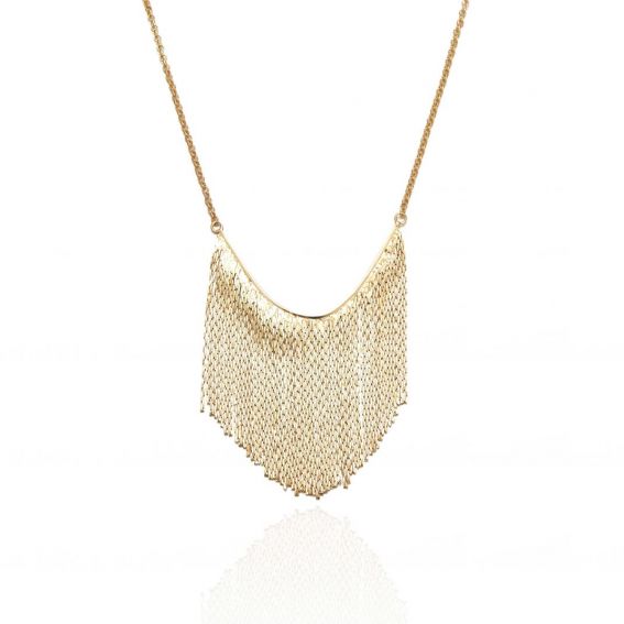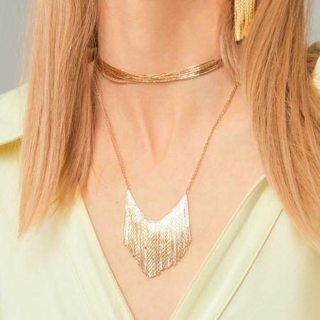 Very delicate necklace gilded with fine 14 carat gold, mounted on a cable chain, of intermediate size, with a cascade of elegant fine chains in its center. To wear in accumulation.
