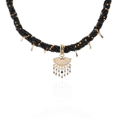 Woven in black textile and enhanced with golden beads, BILKIS showcases HIPANEMA's iconic eagle, meticulously hand-carved. Its beaded tail, inspired by Navajo motifs, creates a strong and refined piece of jewelry.
