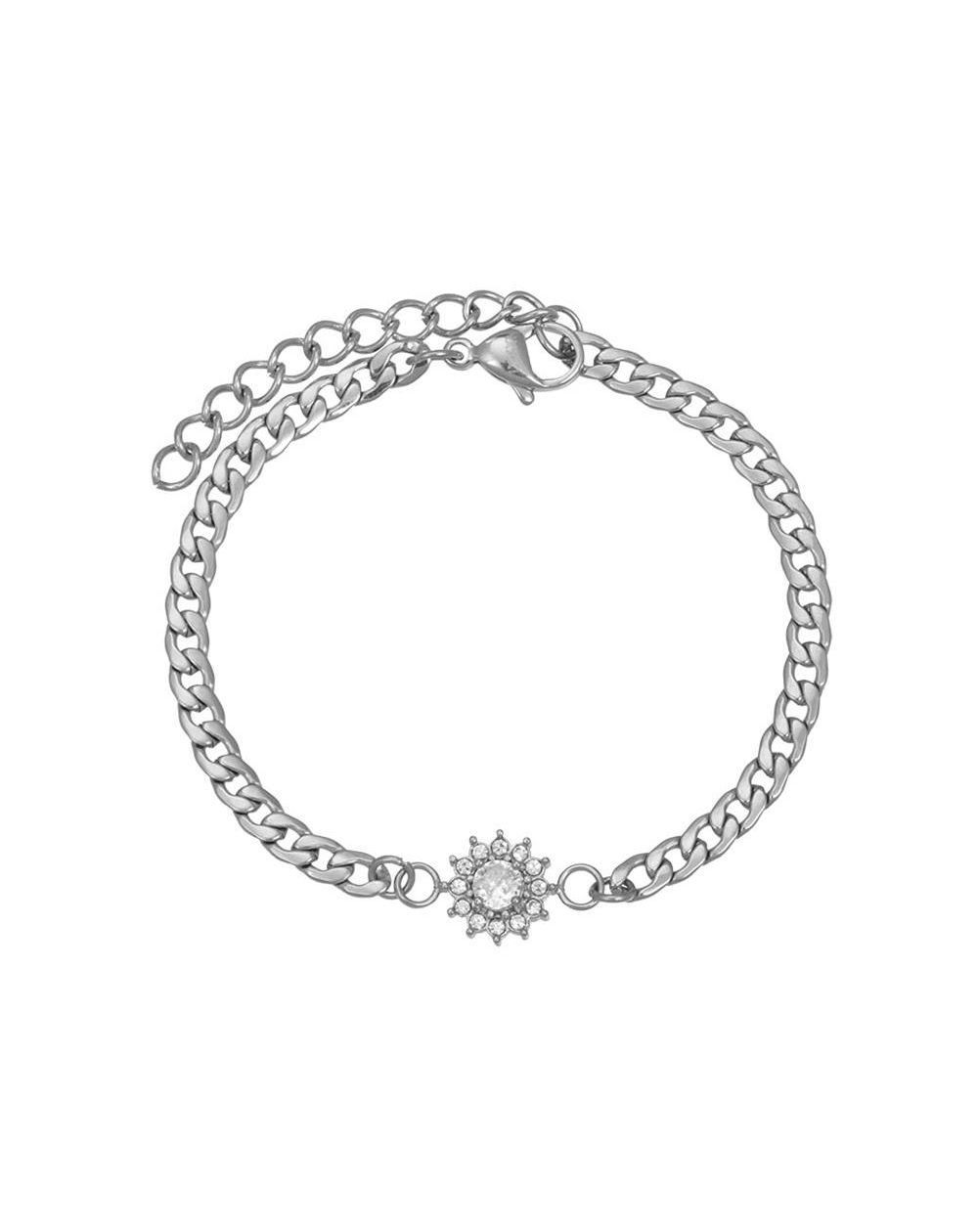 This bracelet from the iXXXi brand is a stainless steel bracelet for women made of a thin, flat link, and features flower-shaped zirconium crystals that attract attention.