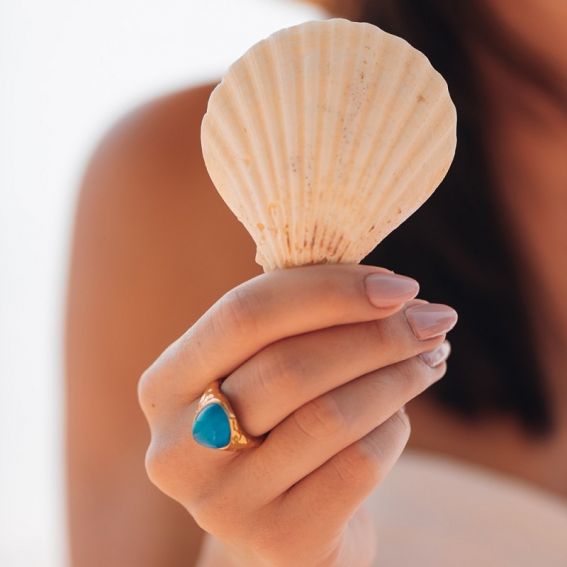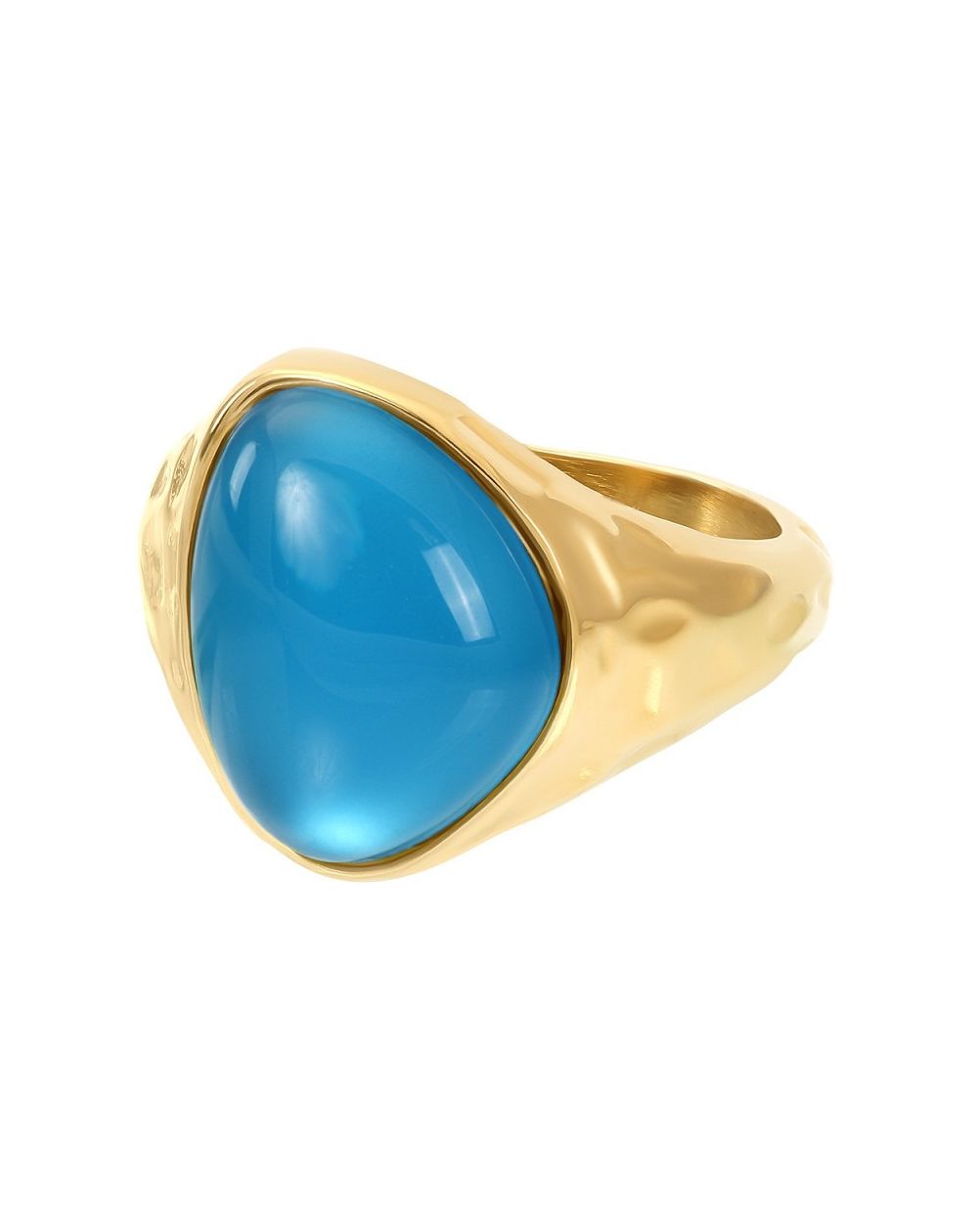 This ring stands out for its bold mix of colors and elegant design Perfect for bringing a note of freshness and glamor to any outfit, it harmoniously combines golden steel and turquoise stone to create a visually attractive and refined contrast