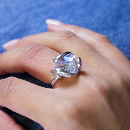 Stone is a Swarovski crystal . This ring is easily adjustable and adapts to the size of your finger.