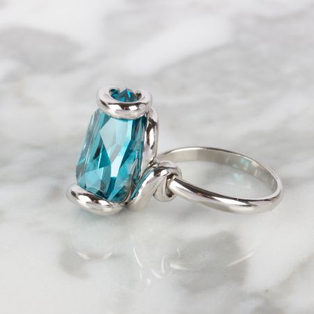 The stone is a Swarovski crystal which measures 14mm high. This ring is easily adjustable and adapts to the size of your finger.