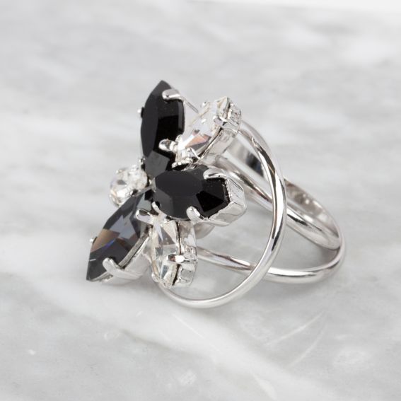 Marazzini Swarovski crystal shuttle ring F62 New Black