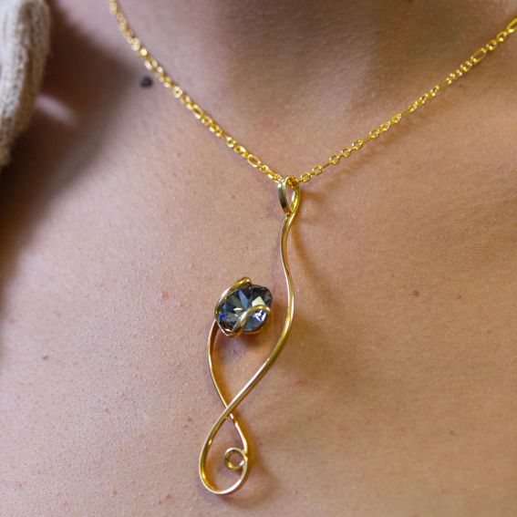 This necklace features a harmonious combination of modern lines and artistic design, while showcasing a central Swarovski crystal. Its delicate and elegant shape is ideal for adding a sophisticated touch to any outfit.