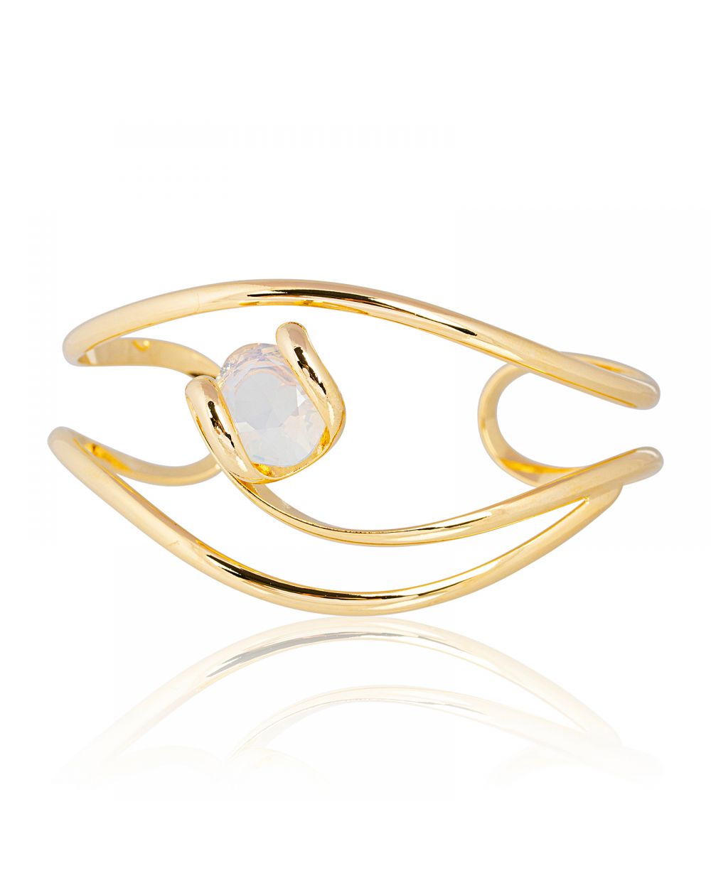 Bring a touch of luminous softness to your wrist with the Andrea Marazzini Mini White Opal BR6 bracelet . Handmade in Italy, this refined piece of fine gold-plated metal reveals a clean, sculptural design, enhanced by a 12 mm white opal Swarovski crystal. The bracelet's flowing lines delicately surround the stone, creating a perfect balance between modernity and poetry.