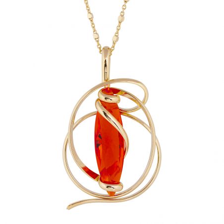 The Andrea Marazzini Navette Orange Divina 2 Necklace is a refined and contemporary piece, ideal for enhancing any outfit. The navette-shaped pendant, enhanced with a vibrant orange crystal, is surrounded by golden curves that give it a chic and modern look. With a height of 53mm , this jewel embodies elegance and boldness. Perfect for those looking for a unique necklace.
