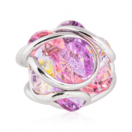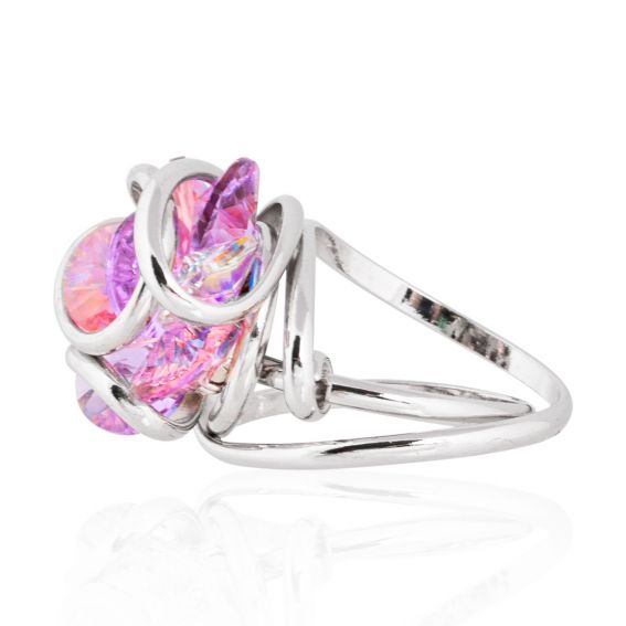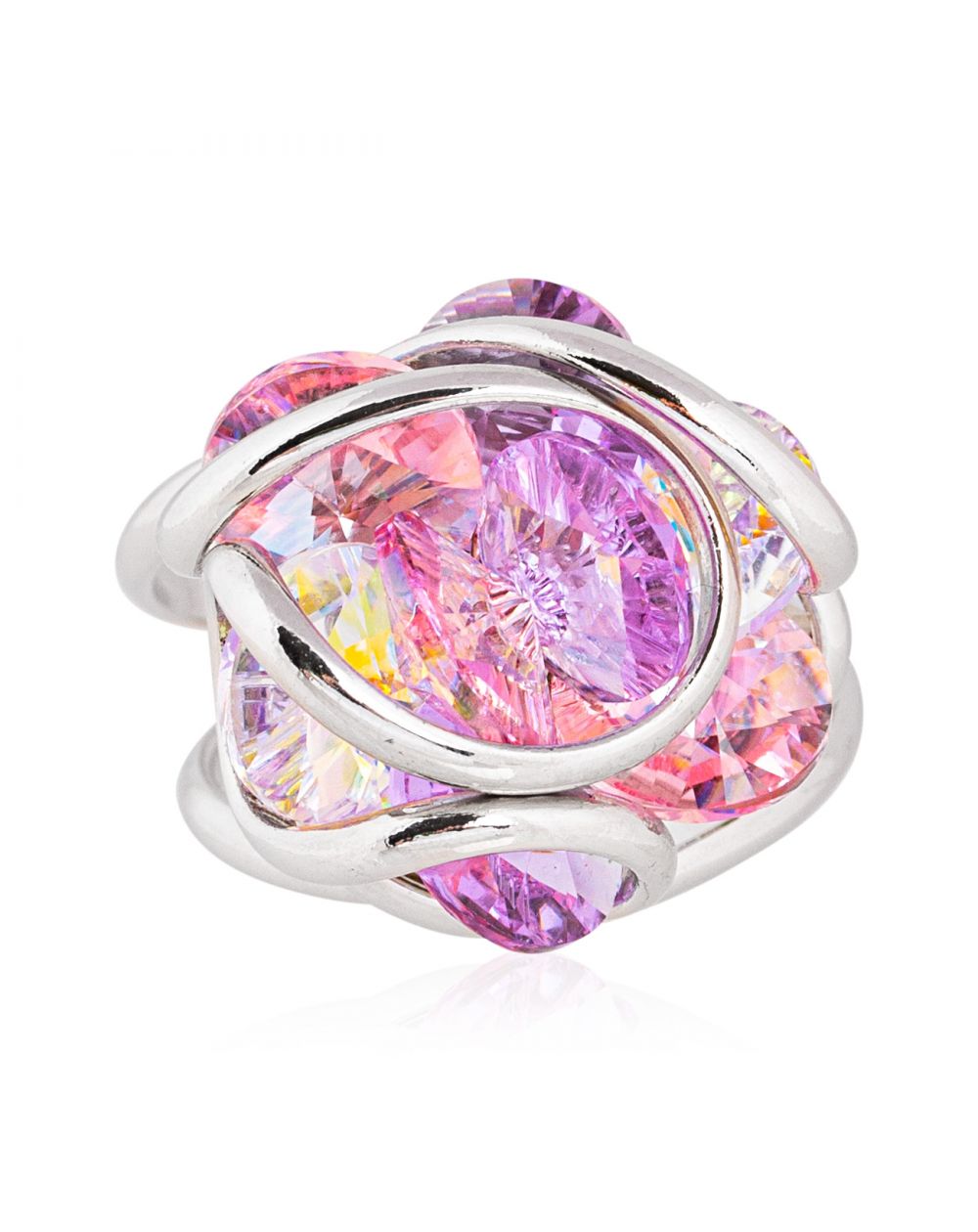 Delicate and poetic, the Ninfea Lilla ring by Andrea Marazzini is a unique creation entirely handmade in Italy. Its floral design consists of a modern silver interlacing that embraces a cluster of Swarovski crystals in lilac, lavender and pink shades , with iridescent and luminous reflections.