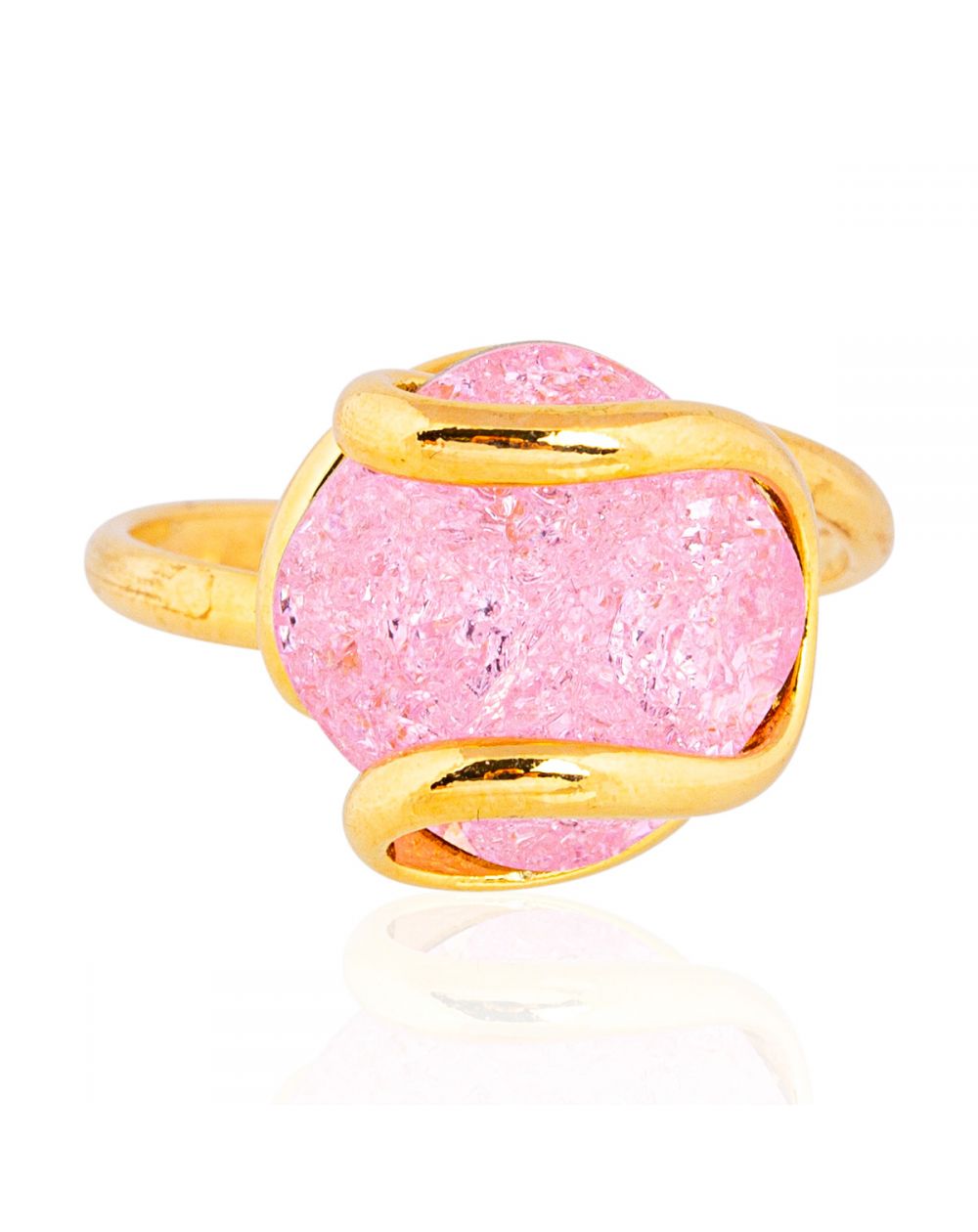 Elegant and feminine, the ICE 2 Rose ring by Andrea Marazzini is an Italian handcrafted creation that seduces with its refined simplicity. Its fine gold-plated brass setting highlights a crackled-effect pink crystal , sparkling in the light and revealing delicate and luminous nuances.