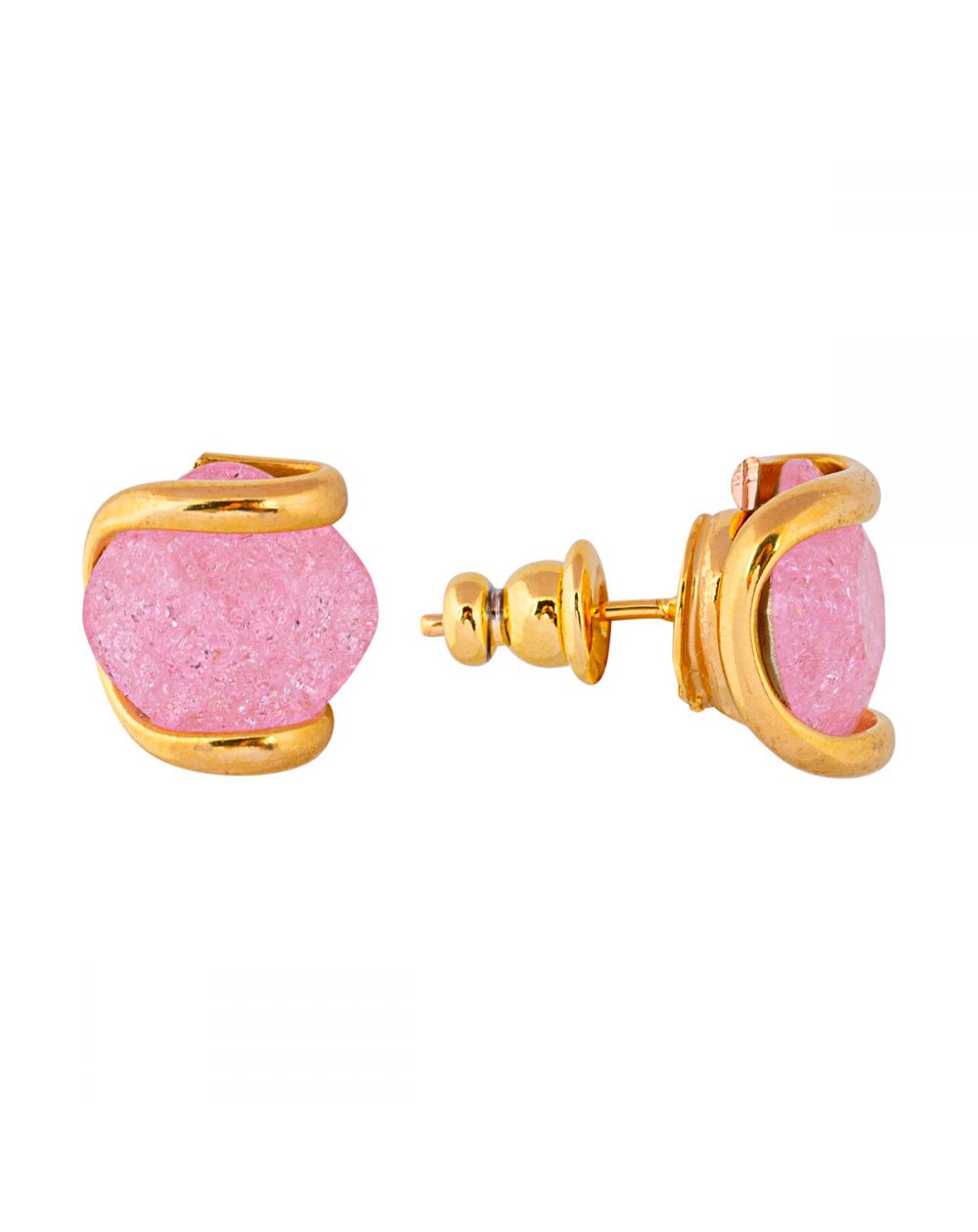 Elegant and feminine, these Marazzini earrings enhance your outfits with a luminous and refined touch. The faceted pink crystal, delicately encased in a gold frame, captures the light with every movement to offer a unique sparkle.