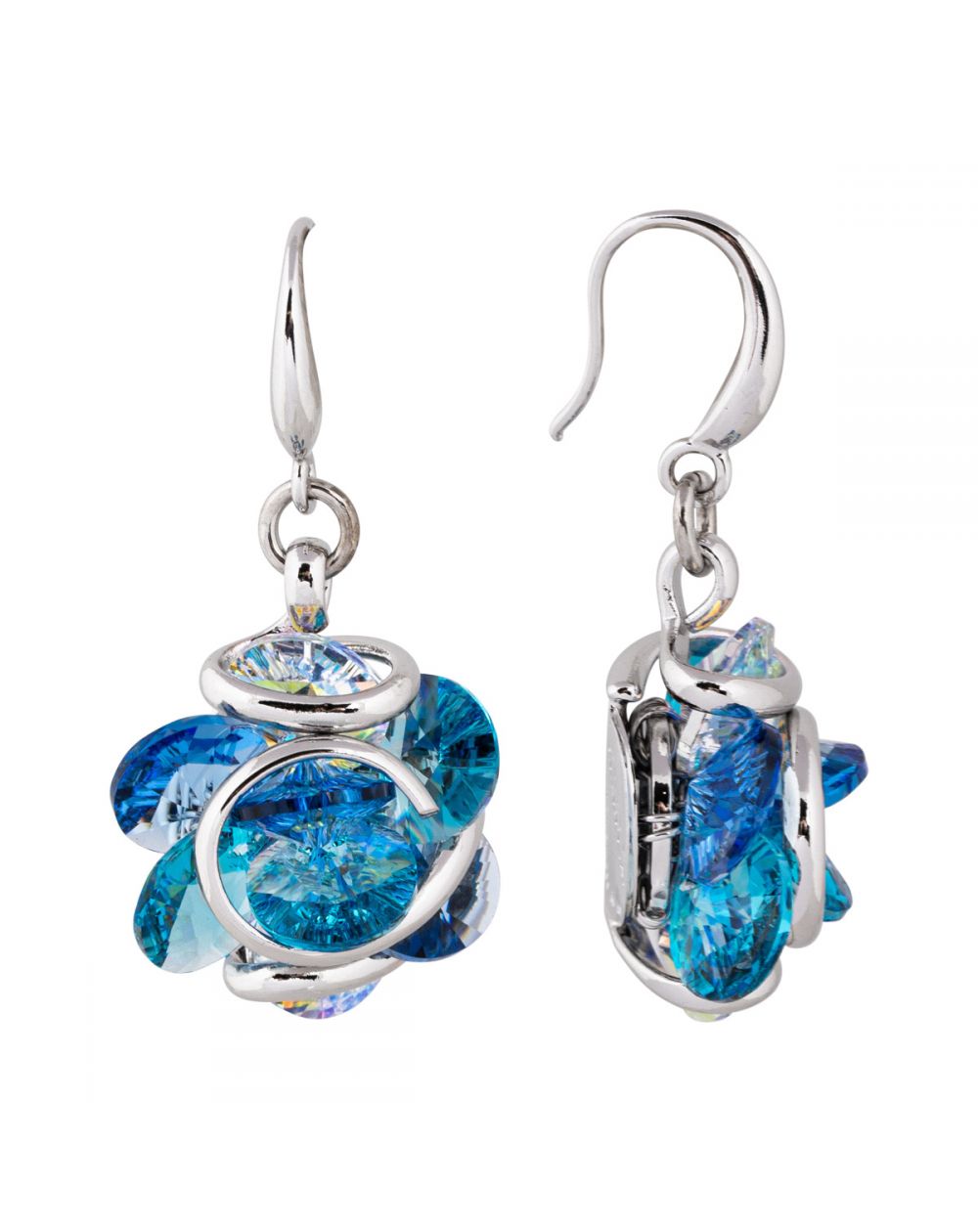 Let yourself be seduced by the captivating brilliance of Andrea Marazzini 's Ninfea Mix Blue earrings. Inspired by the fluidity of natural forms, they showcase a composition of blue and turquoise crystals with intense, luminous reflections. Mounted on a silver structure with artistic lines, they capture the light with every movement for a spectacular effect.
