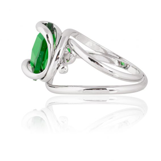 Sculptural and refined, the Andrea Marazzini Leaf Fernet Green ring reveals all the talent of the Italian designer. Handcrafted in Italy , this bold piece in shiny silver metal embraces a sumptuous emerald green Swarovski® crystal , a symbol of energy and elegance.
