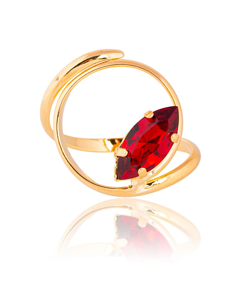 Bold and sophisticated, the Andrea Marazzini Navette Siam ring stands out with its sleek, sculptural design. Handcrafted in Italy , this 24-carat gold-plated metal creation features a sumptuous Swarovski® Siam red crystal , cut in a navette shape.