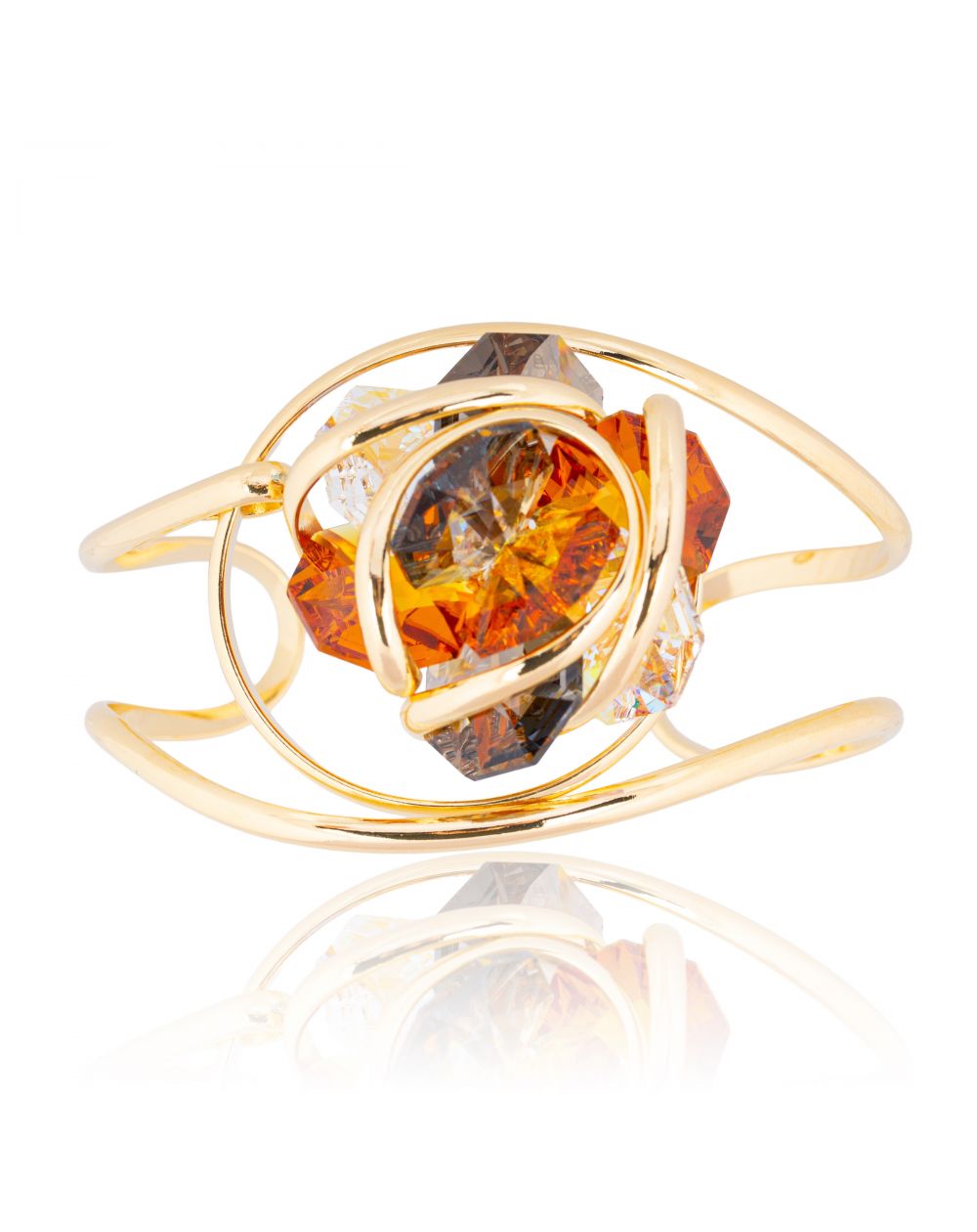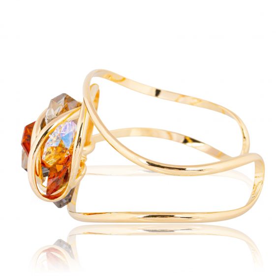 The Andrea Marazzini Flower F05 Mix Beige bracelet is a bold and luminous creation that immediately catches the eye. At its center, a 34mm diameter Swarovski crystal , in shades of beige, honey, and amber , captures the light with spectacular intensity and reveals a refined play of facets.