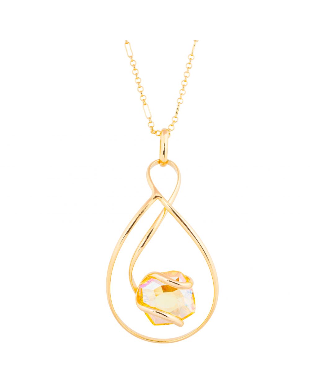 The Big Mystic Shimmer necklace by Andrea Marazzini is a striking and luminous piece, designed to enhance the silhouette with elegance and character. Its majestic pendant, with its fluid and airy lines, envelops a faceted crystal with golden and iridescent reflections, offering a mesmerizing play of light with every movement.