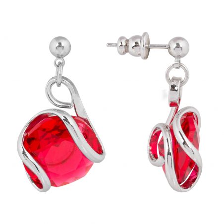 Short silver earrings with red crystal – Andrea Marazzini Cherry Red