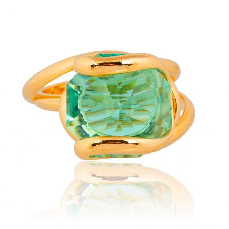 The gold setting gently envelops the crystal in a fluid, organic movement, creating a refined contrast between the metal's brilliance and the stone's luminous transparency. Thanks to its adjustable band , this ring easily adapts to different finger sizes, ensuring comfort and freedom of movement every day.