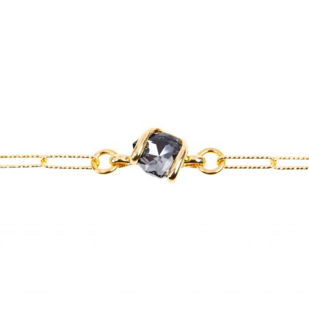 At the center of the bracelet, a cushion-cut Swarovski® crystal in a deep gray hue subtly captures the light. The signature gold setting embraces the stone in a fluid, organic movement, highlighting its brilliance while maintaining a minimalist style.