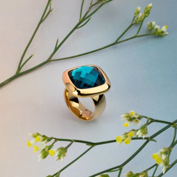 The Kosmic collection allows you to work with larger and more pronounced stones. You can personalize Kate yourself with all different discs: from round to square and from gemstone to wood. The Kate ring measures 8mm wide and is available in silver or gold plated.