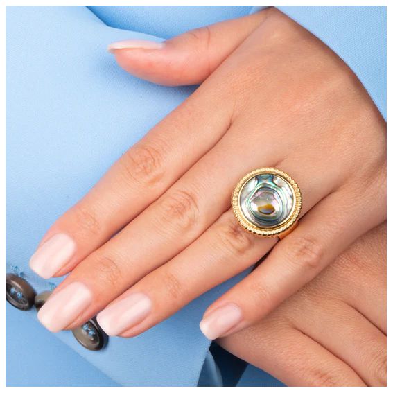 The Melano Kosmic Bali Abalone stone mentally transports you to a pristine white sand beach, even on the coldest winter days. Treat yourself to a mini-escape with this stunning abalone stone. Tip: Mix and match with our other Bali jewelry! The Bali Abalone stone is 22mm wide and is available in silver or gold plating.
