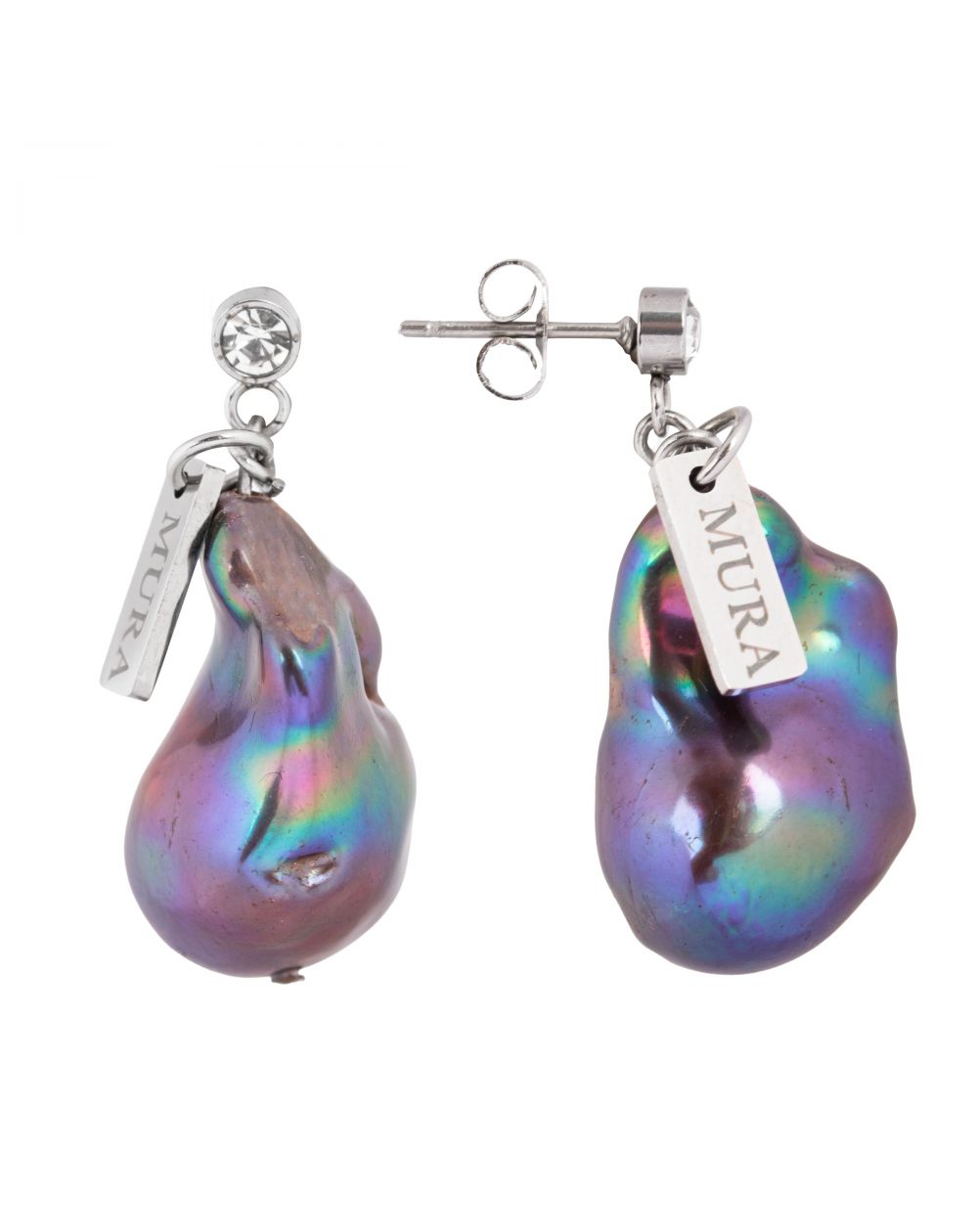 The Perla earrings by MURA embody modern and artistic elegance thanks to their baroque pearls with spectacular iridescent reflections . Each pearl reveals a unique play of colors blending purple, green, and metallic hues, capturing the light with every movement.