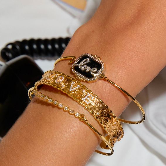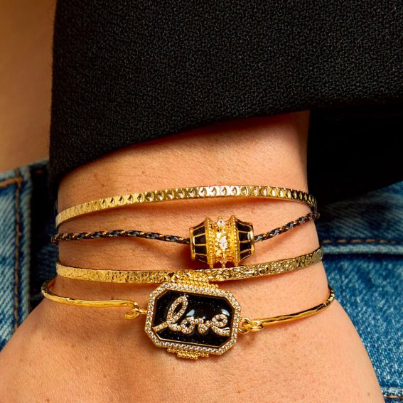 Bring a chic and bohemian touch to your outfits with the Black Shiny Love Bohème bracelet from MYA BAY , an iconic piece gilded with 24-carat recycled gold. This refined jewel is distinguished by its shimmering black enamel, adorned with delicate sequins that catch the light, and its inspiring inscription “Love”.