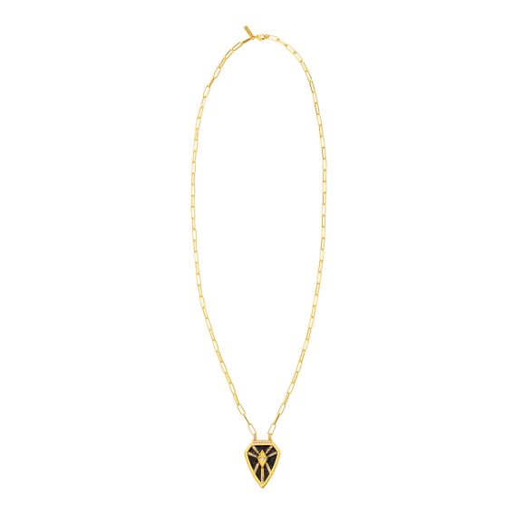 Embrace a bold and sophisticated look with the Black Shiny Warrior Necklace from MYA-BAY. Featuring sumptuous black glitter enamel, this piece is the perfect choice for those who want to express their inner strength and rebellious spirit, while remaining elegant.