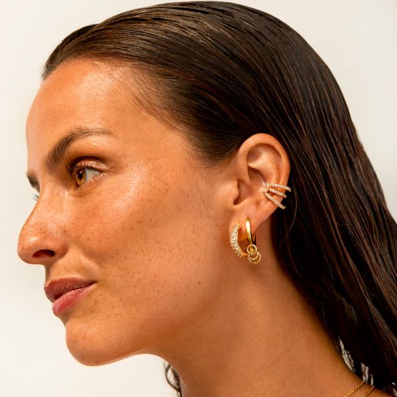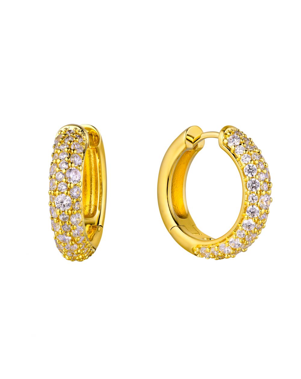 Their gold-plated finish reveals a warm and refined shine, ideal for those seeking pavé gold hoops that combine modernity, comfort, and jewel-like brilliance. The Champagne hoops perfectly embody MYA BAY's chic and feminine style, with a luminous presence that instantly enhances the face.