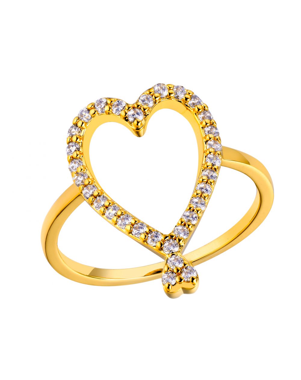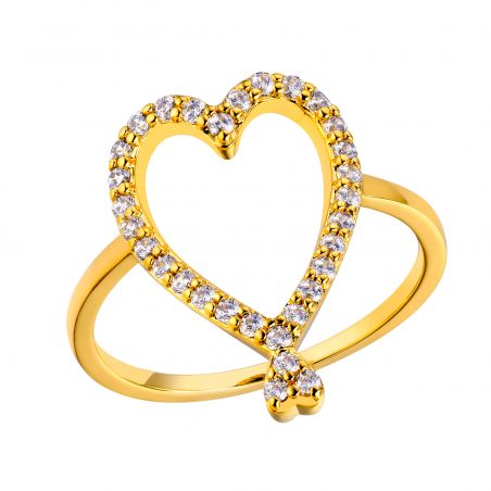 The Twin Hearts ring from MYA BAY reveals a romantic and luminous design, enhanced by an open heart delicately paved with sparkling cubic zirconia . Its slim and elegant gold silhouette creates an airy shape that catches the light with every movement and adds a touch of refined softness to everyday wear.