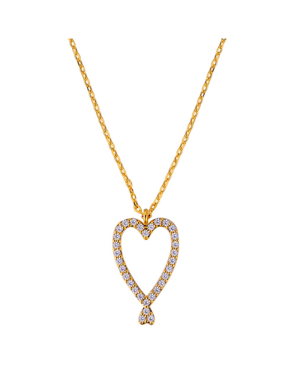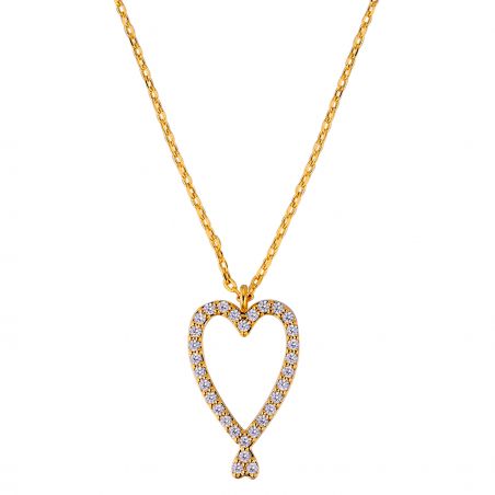 The Twin Hearts Gold necklace from MYA BAY celebrates love with radiant delicacy. Its pendant, formed by two intertwined hearts and entirely paved with sparkling crystals, brings a touch of modern romance and golden brilliance to your style.