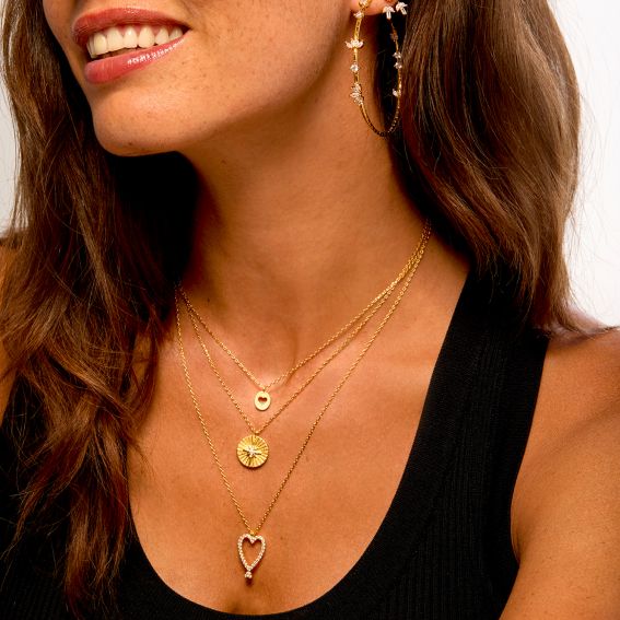 Mounted on a delicate 38cm chain with a 5cm extender, it sits perfectly at the nape of the neck and enhances both everyday looks and more formal outfits. A feminine, luminous, and timeless piece, designed for those who want to wear a tender symbol with an ultra-trendy sparkle.