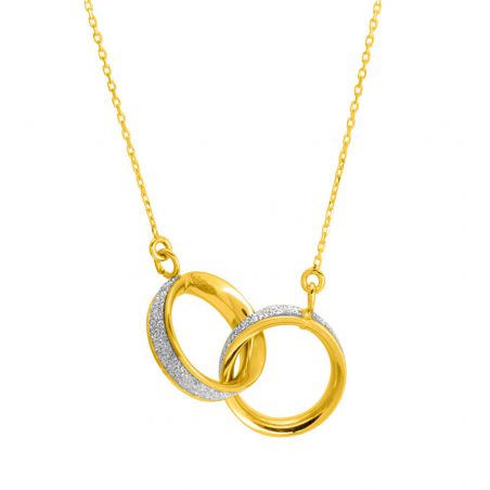 This 9 carat gold necklace is a necklace made up of 2 circles covered with brilliants. This necklace measures 42cm and is adjustable at 40cm.