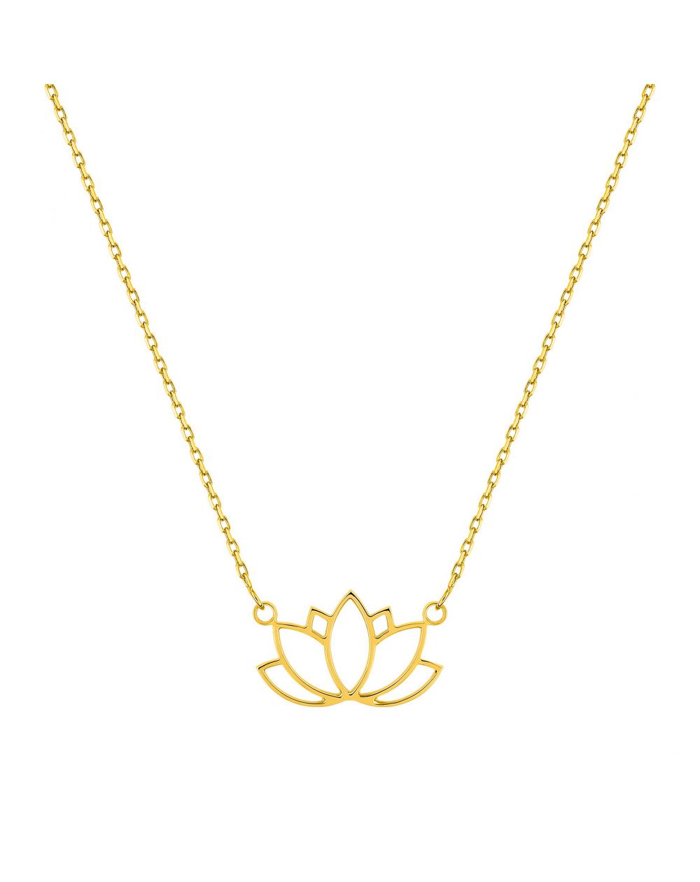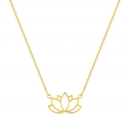 This 9 carat gold necklace is a lotus -shaped necklace. This necklace measures 42cm and is adjustable at 40cm.