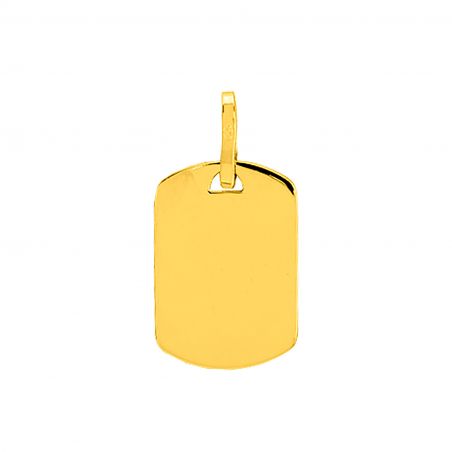 This 18k gold pendant is a plaque that can be engraved with a name or date. This pendant measures 19mm in height.