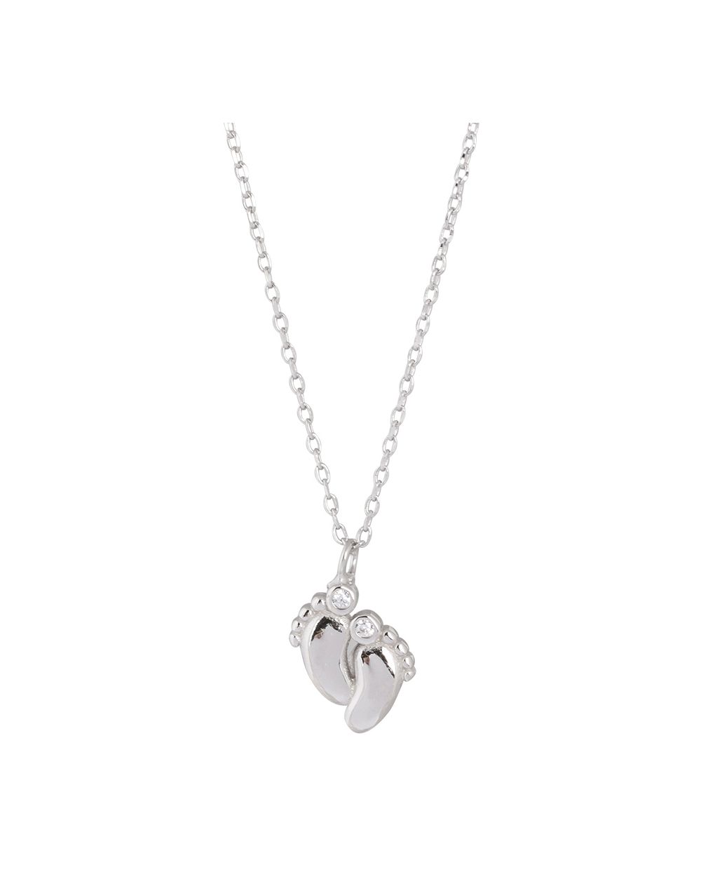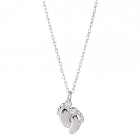 This women's necklace is a 925 silver necklace with small feet set with stones.