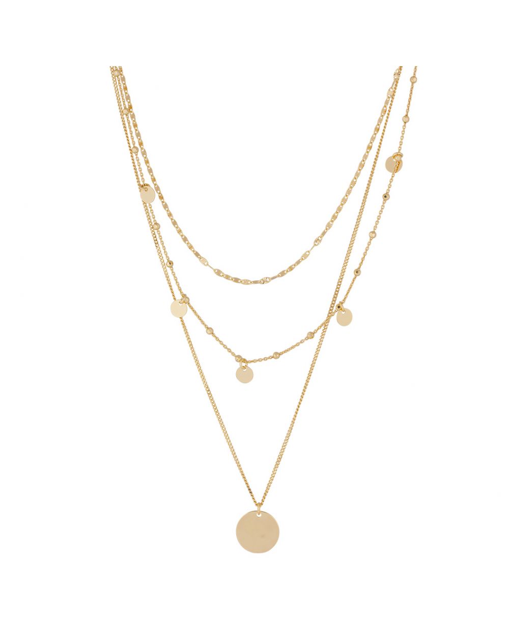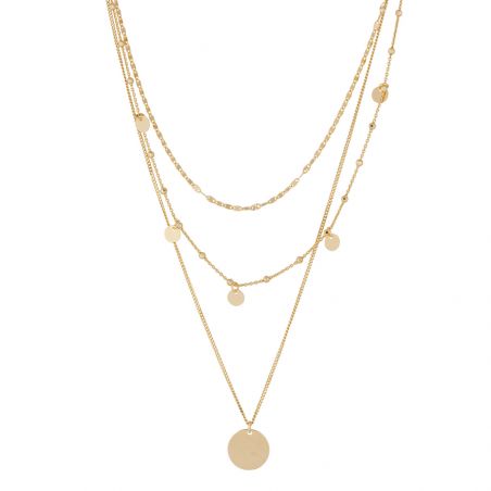 This women's necklace is a multi-row necklace with medals. The largest of the medals can be engraved with a few letters. This necklace is adjustable in length.