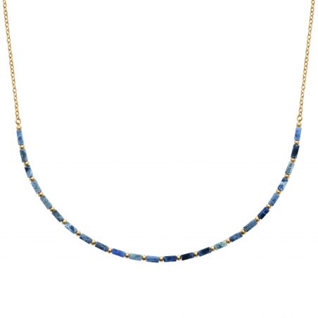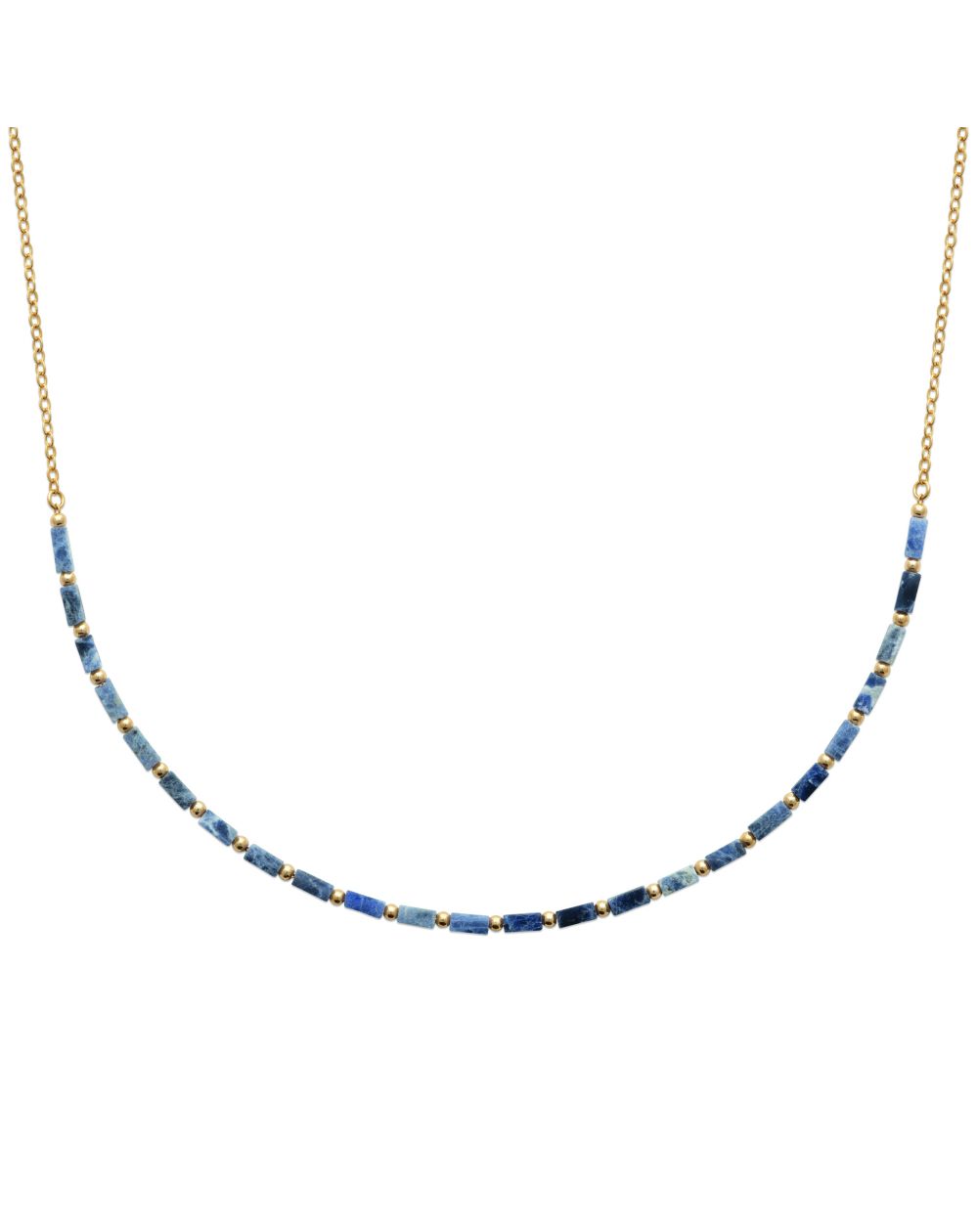 This necklace is an 18k gold plated necklace with sodalite stones.
