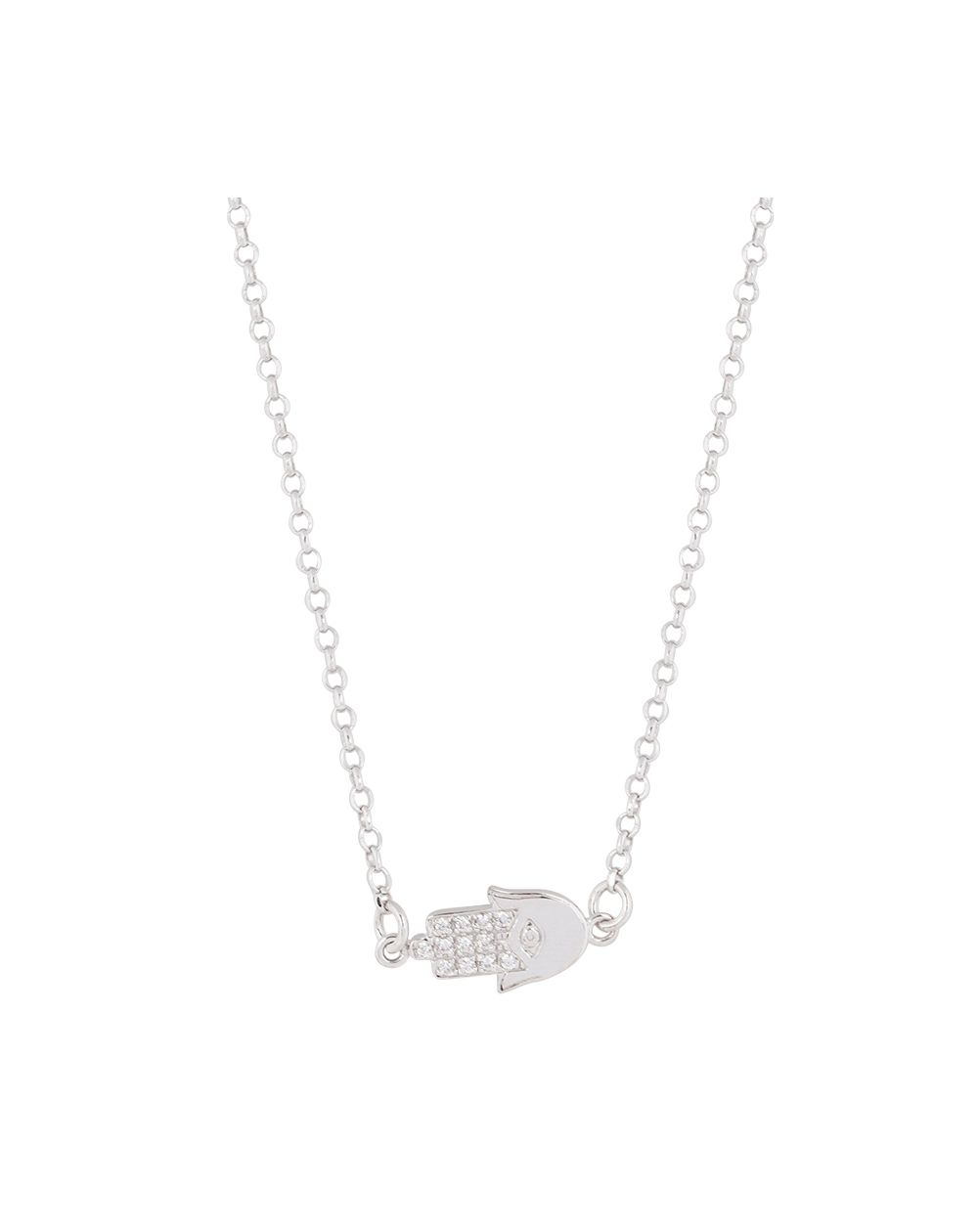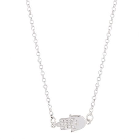 This 925 silver necklace is a necklace with a hand of fatima with zirconium oxide stones.