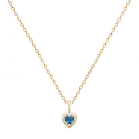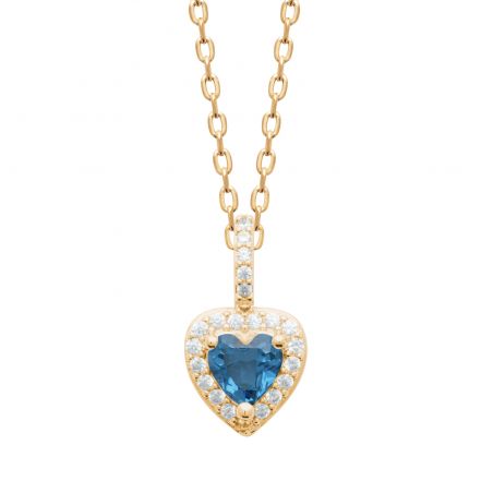 Bijou argent/plaqué or Gold plated sapphire blue stone heart pendant