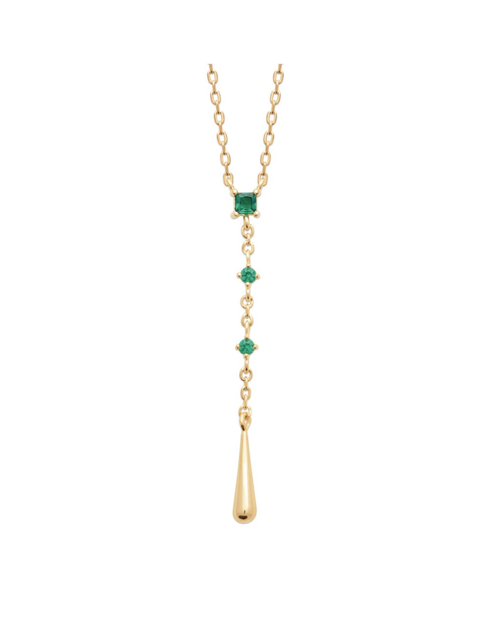 Bijou argent/plaqué or Lyssia Necklace – Gold teardrop and green stones plated in 18-carat gold