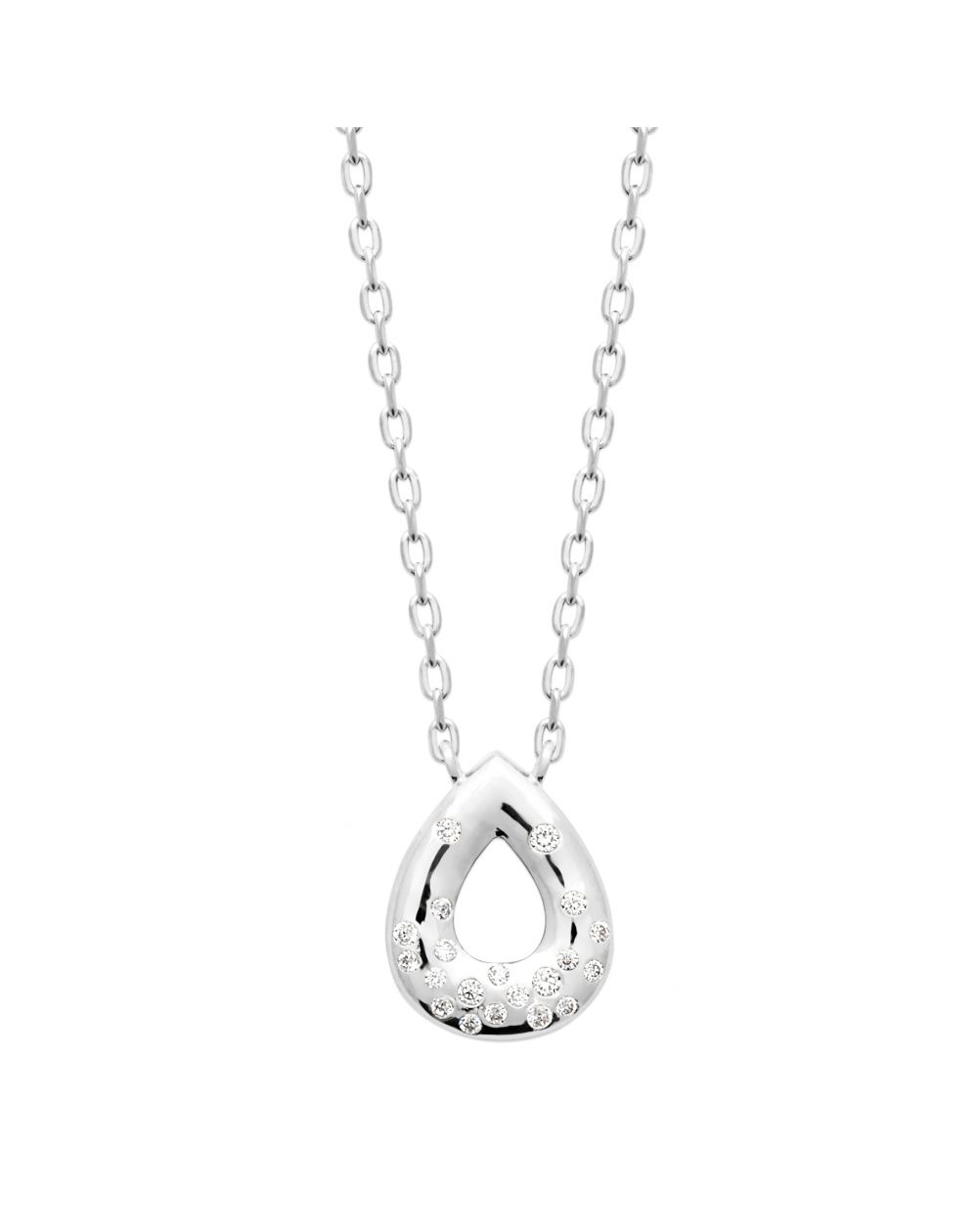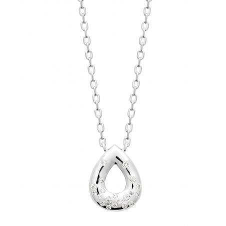 This rhodium-plated 925 sterling silver necklace is distinguished by its openwork teardrop pendant , delicately pavé-set with sparkling cubic zirconia . Its clean and refined design subtly captures the light, offering an elegant and timeless brilliance.