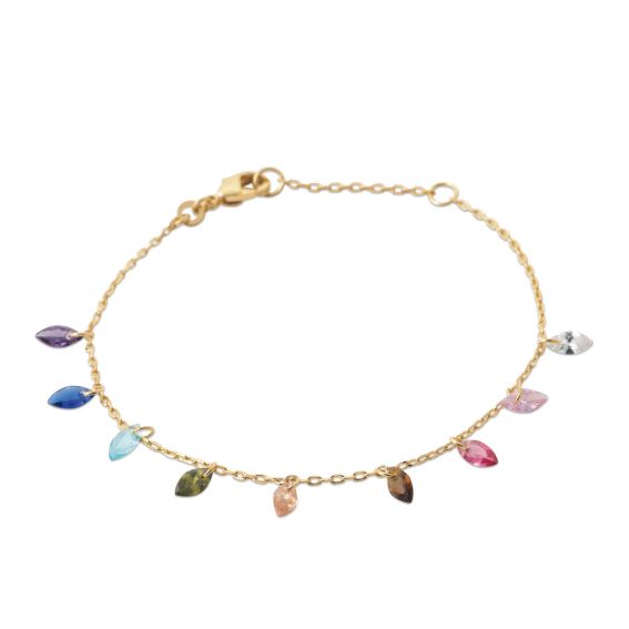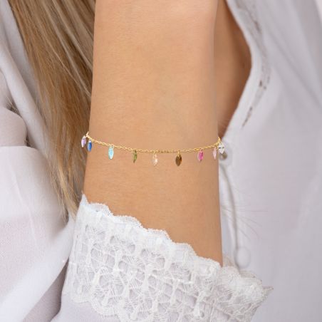 Fall in love with this multicoloured pendant bracelet in 18 carat gold plating , a delicate and luminous piece that adorns the wrist with elegance and modernity.