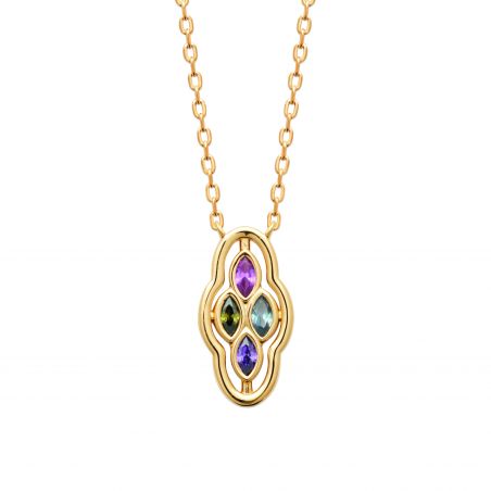 Make a statement with the Maya Multicolor necklace in gold plating , an elegant piece with a refined and contemporary design. Its structured pendant with soft lines showcases a harmonious arrangement of subtly hued stones, creating a luminous and sophisticated interplay of colors.