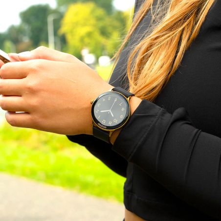 This OOZOO brand watch is a connected watch compatible with Android and iPhone. The entire dial is tactile. This one measures 45mm in diameter and 12mm thick.
