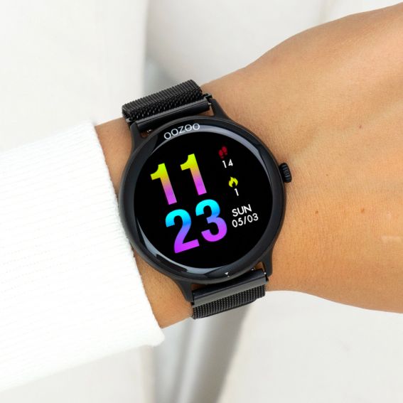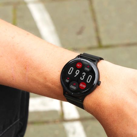 This OOZOO brand watch is a connected watch compatible with Android and iPhone. The entire dial is tactile. This one measures 45mm in diameter and 12mm thick.