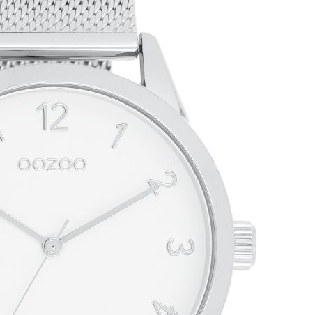 Let your style shine brightly with this stunning round design for women from the trendy OOZOO Timepieces collection. The C11320 model features a silver-tone metal mesh bracelet and a 40mm silver-tone metal watch case. Assert your elegance with confidence thanks to its silver dial, decorated with silver numerals and matching hands. This watch will quickly become an essential in your wardrobe, with its mineral glass and metal case with plating. Its stainless steel back guarantees flawless safety against nickel. Powered by a Japanese 2ATM movement, it combines precision and reliability. Plus, enjoy peace of mind with its 2-year warranty.