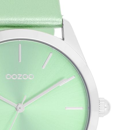 Make a splash with this beautiful round design for ladies from the trendy OOZOO Timepieces collection. The C11336 model features a mint green leather strap with a metallic look and a 40mm silver-colored metal watch case. Make a confident statement with this mint green sunray dial, its striped silver numerals and matching hands. This essential watch for your wardrobe is equipped with a mineral glass and a metal case with IP plating, ensuring optimal durability. Its stainless steel back not only guarantees safety against nickel, but also superior comfort. Powered by a Japanese 2ATM movement, it offers reliable precision to accompany you in all circumstances. Plus, get a 2-year warranty for complete peace of mind.