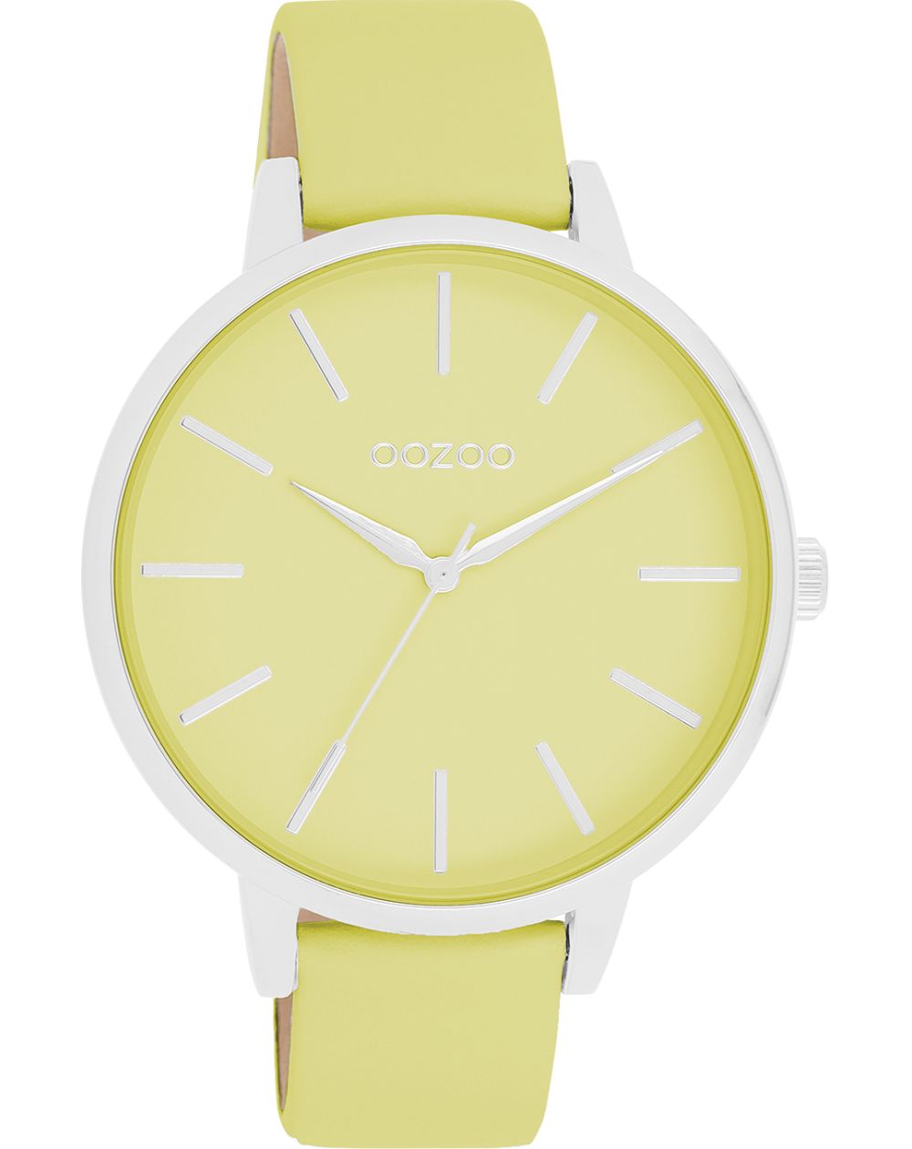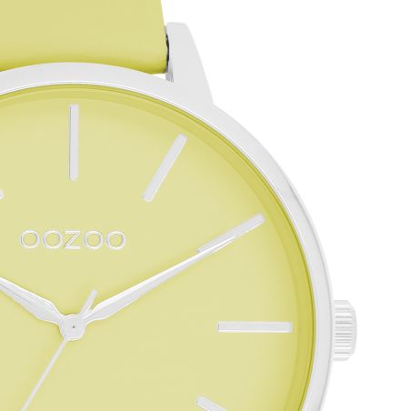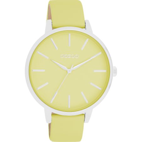 Make a splash with this beautiful round ladies' model from the trendy OOZOO Timepieces watch collection. The C11360 features a lime green leather strap and a 42mm silver metal watch case. You assert your style with this lime green dial, silver striped numerals and matching hands. This must-have watch for your wardrobe features a mineral glass and a metal watch case with gold plating. This design features a stainless steel caseback and is guaranteed nickel-free. This watch features a Japanese 2ATM movement and is backed by a 2 year warranty.