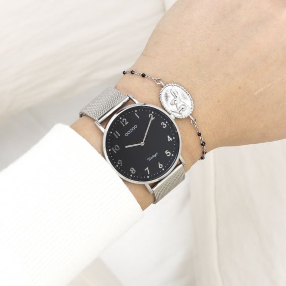 The classic look remains essential in this trendy series and therefore, this round vintage design from OOZOO with a playful wink is the must-have of the season! This unisex watch is the perfect combination of fashion and comfort with its 40mm silver-colored metal watch case and black dial. The silver-colored metal mesh strap gives this watch a fashionable accessory you can wear every day. The dial features matching silver dots, numbers and hands. Model C20341 adds sparkle to your outfit. Mineral glass is integrated into a slim 6.9mm metal watch case with plating. This design is equipped with a stainless steel backplate and is guaranteed nickel-free. This watch features a Japanese 2ATM movement.