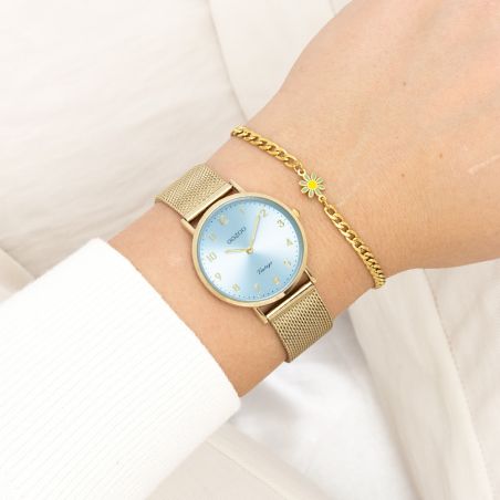 Immerse yourself in elegance and sophistication with our latest OOZOO watch, a true jewel of the season! This iconic piece embodies the perfect marriage of vintage charm and bold modernity, giving your style an irresistible touch of refinement. The 32mm gold-tone metal case, paired with the light blue sunray dial, evokes a subtle, captivating glow, perfect for any occasion. Its gold-tone metal mesh bracelet adds a touch of glamor to your wrist, while the gold dial details and reference C20348 illuminate your style with a dazzling glow. With its durable mineral glass and high-precision Japanese movement, this watch embodies the perfect fusion of elegance and functionality. Don't miss the opportunity to shine in style. Opt for our OOZOO watch today and transform every moment into a true ode to beauty and elegance.