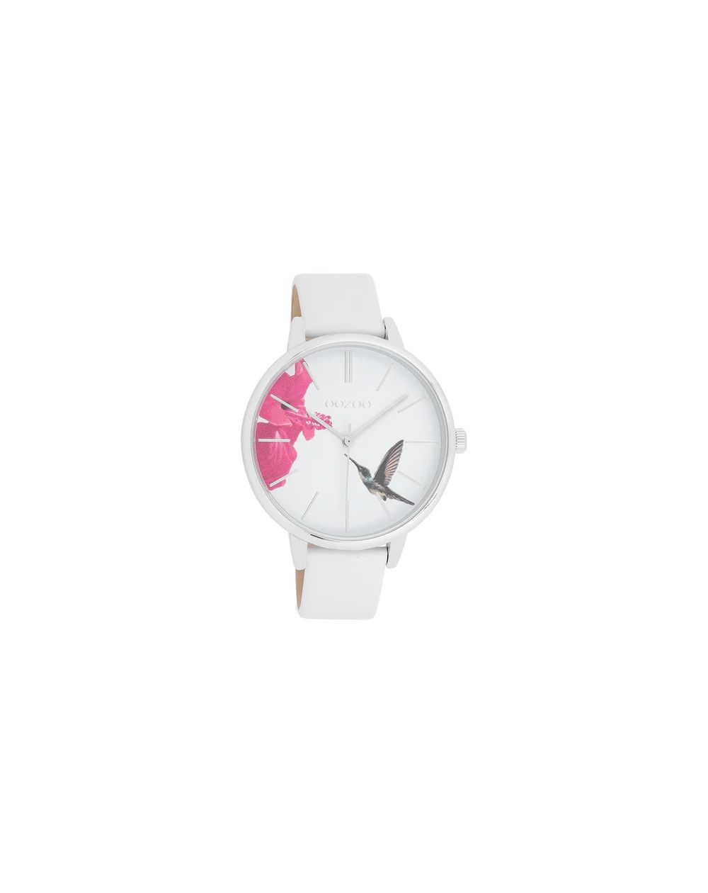 Stand out with this beautiful round design for ladies from the trendy OOZOO Timepieces watch collection. The C11065 features a white leather strap and a 42mm silver watch case with white dial. You make a real fashion statement with this white dial, silver-colored striped numerals and silver-colored hands. This essential watch for your wardrobe features a mineral glass and a metal watch case with plating. This design has a stainless steel backplate and is guaranteed nickel-free . This watch features a Japanese 2ATM movement and is backed by a 2 year warranty.